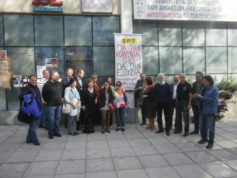 Οι Έλληνες συνάδελφοί μας εργάζονται απλήρωτοι για 4 μήνες, αντιμετωπίζοντας την πλήρη αδιαφορία της πολιτείας, αλλά έχοντας την υποστήριξη της κοινωνίας. Η ΕΟΔ είναι υπερήφανη για την παραδειγματική αντοχή αυτών των δημοσιογράφων και την αφοσίωσή τους στην προσπάθεια να συνεχιστεί η δημόσια ραδιοτηλεοπτική ενημέρωση, την οποία η κυβέρνηση εγκατέλειψε.